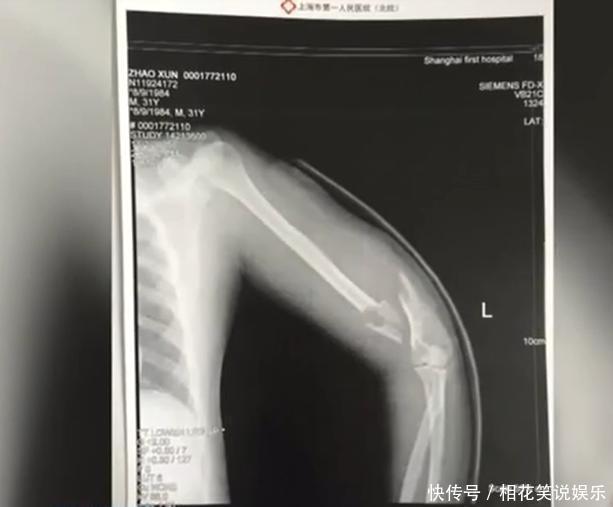 那次意外中,赵荀全身多处骨折,包括骨盆粉碎性骨折(碎成23块)、左臂神经断裂、颅内出血,头部也有多处裂痕。